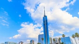 1989年に建てられた全長234mのタワーです。天気のよい日に訪れると、8000枚のハーフミラーに覆われた外観が青空と一体になりとても綺麗です。